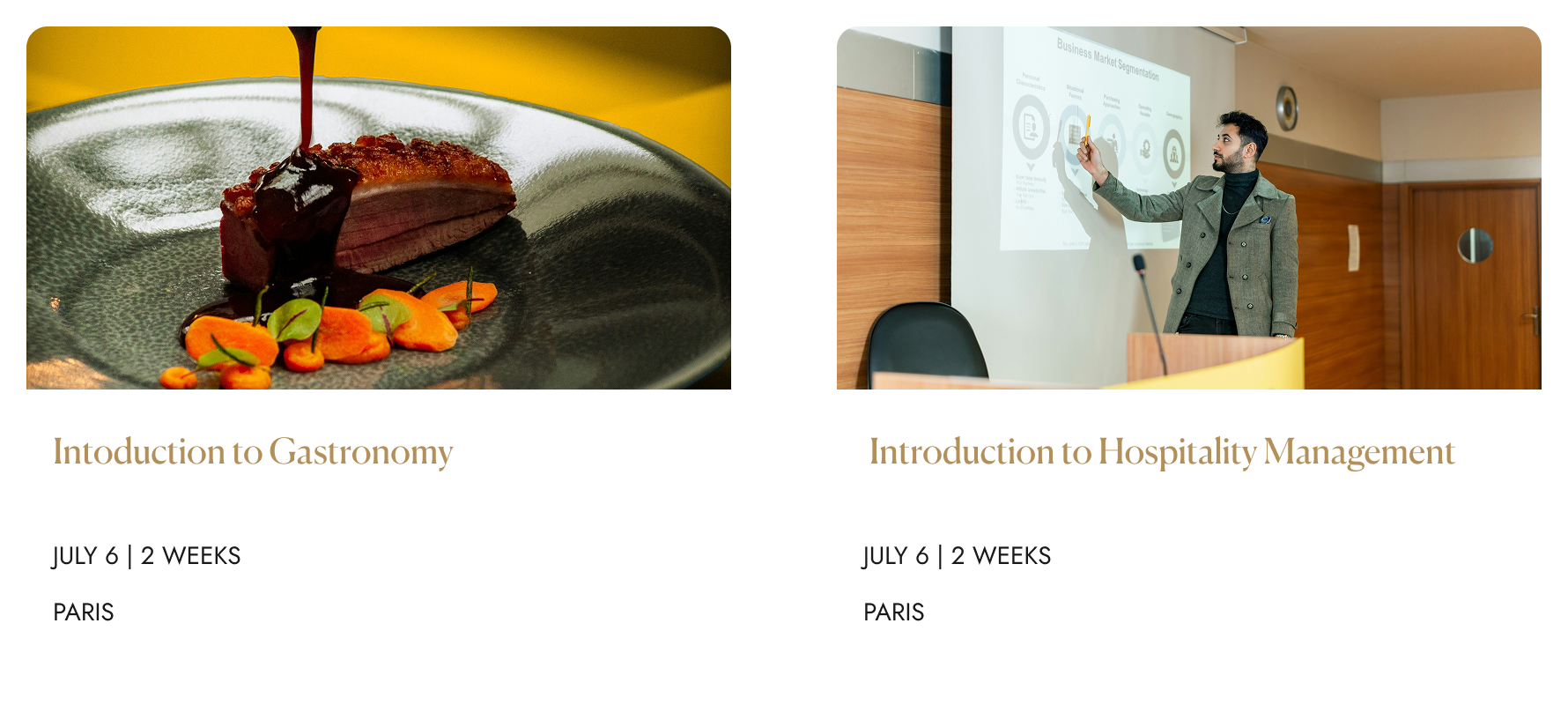 The Summer Institute offers a rich mix of courses, from hospitality management and gastronomy to luxury and customer experience. French language classes complement the academic curriculum, allowing students to both study and live the French art de vivre.